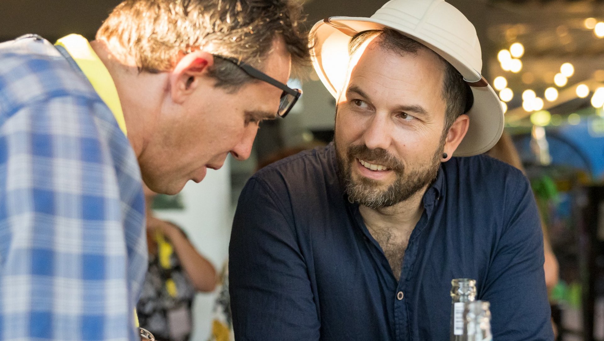 Zum Abendessen wanderten die Besucher von einem Essensstand zum nächsten und probierten sich durch das kulinarische Angebot des Abends. Jedes Gericht war in einer vegetarischen Variante erhältlich – von Wraps bis Fish & Chips. Zum Dessert gab es eine süsse Erfrischung; Frozen Yoghurt, dekoriert nach eigenem Geschmack. Wein, Bier und Softdrinks zum Anstossen sowie Wasser zum Abkühlen stellte die Bar den ganzen Abend über bereit. Zielsichere Gäste konnten sich danach gemeinsam dem Dartspielen zuwenden, Fussballfans dem «Töggelichasten» und wem beim Rundlauf nicht schwindelig wurde, der gesellte sich um den Pingpongtisch. Bis in die Dunkelheit wurde gemeinsam gefeiert.