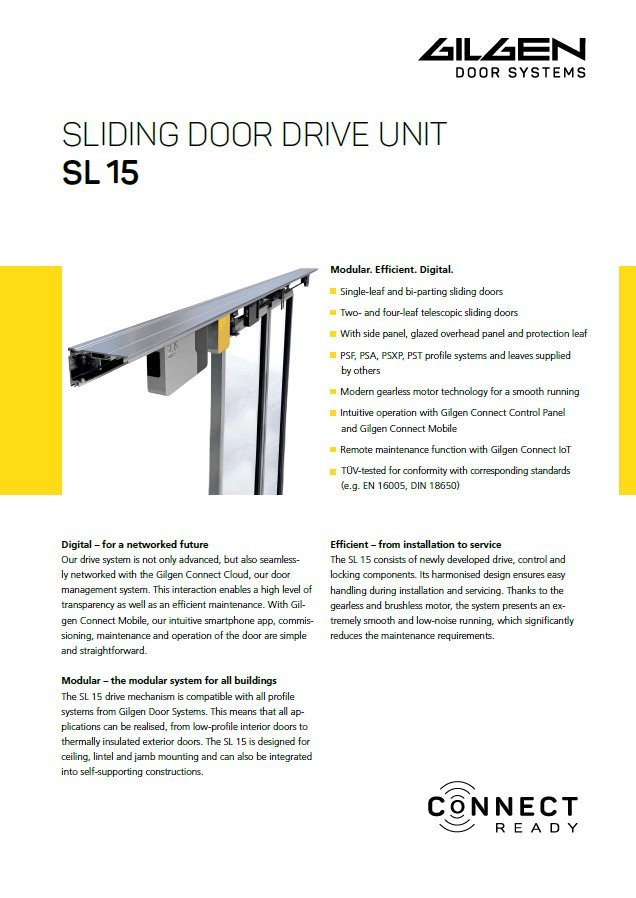 Gilgen Connect Mobile brings commissioning and operation of the SL 15 well and truly into the digital age. Our world of digital door systems offers a wealth of practical functions. Access all door information and configure your door in an easy-to-understand way. See all the details of your door at a glance and save the configuration data on Gilgen Connect Cloud – so you can apply the same configuration to other doors with just one click.