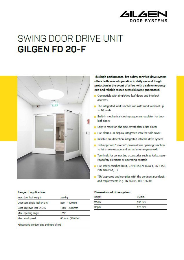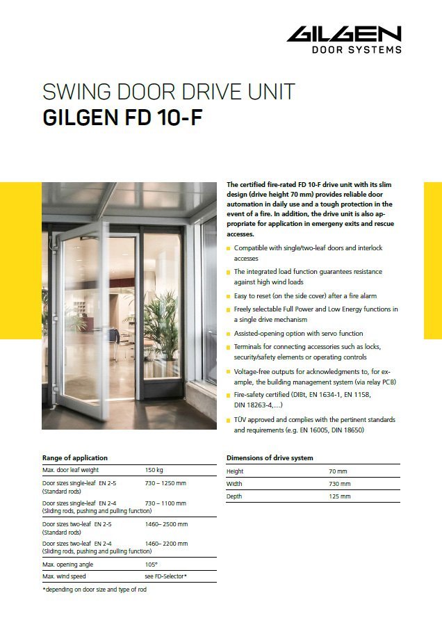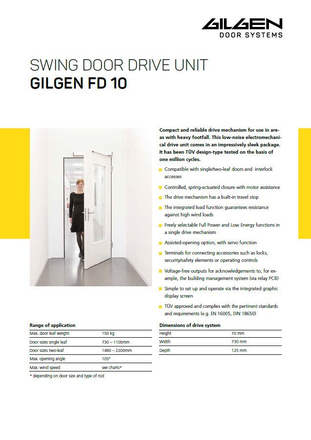 Low-noise electromechanical operators are an excellent choice for a wide range of doors - from light interior to heavy exterior doors. They provide reliable door automation for everyday use, but can also be used as a resistant fire closure.