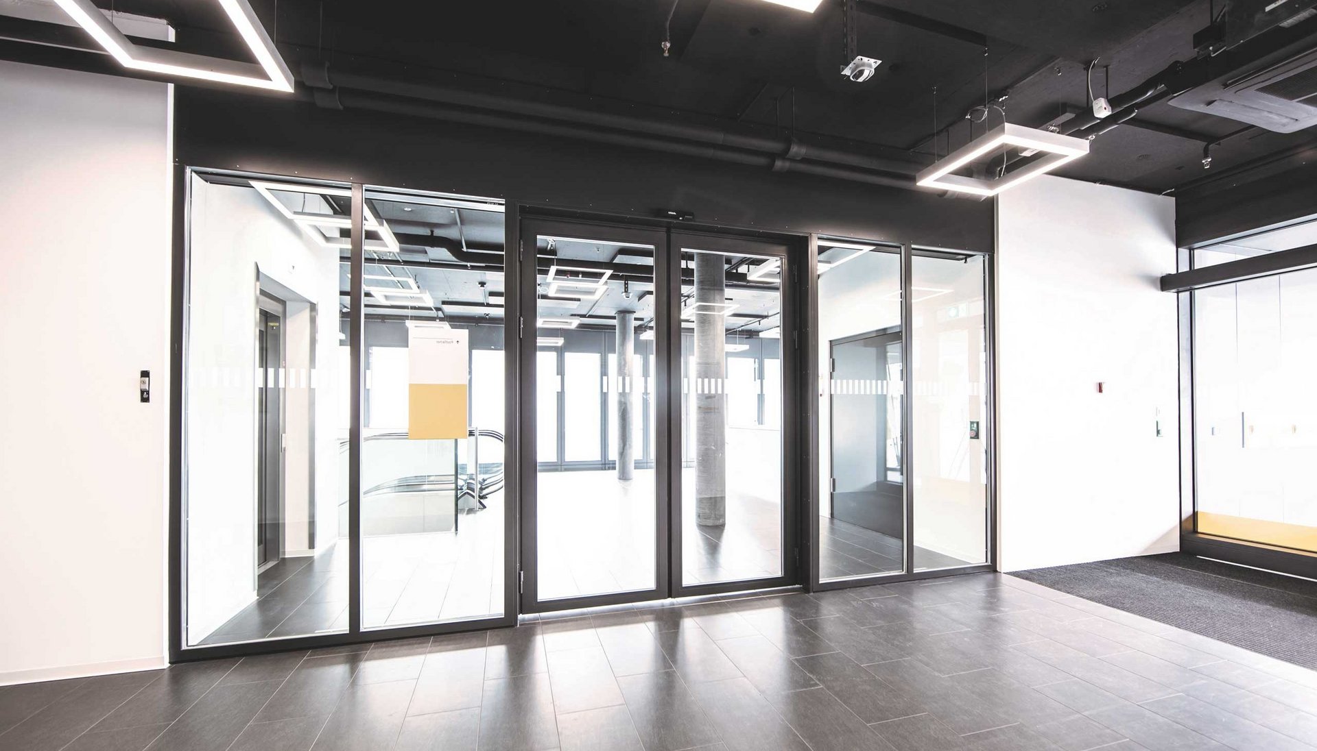 Les issues de secours doivent impérativement être garanties en cas d'urgence - cela vaut également pour les systèmes de portes coulissantes automatiques. Gilgen Door Systems propose des solutions avec fonction d'issue de secours selon EN 16005 et garantit une sortie sûre du bâtiment en cas d'accident.