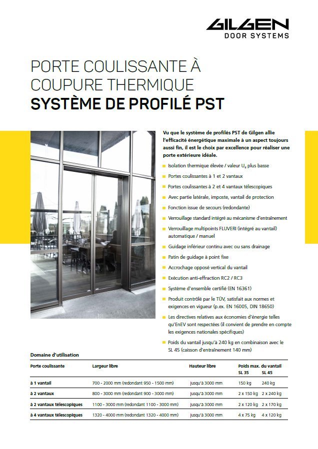 Gilgen est votre partenaire pour un bilan énergétique positif - grâce à des systèmes de profilés à rupture de pont thermique et à un fonctionnement économe en énergie. Les systèmes de portes Gilgen, élégants et économes en énergie, sont disponibles pour les issues de secours et les voies d'évacuation et/ou comme système anti-effraction dans les classes RC2 et RC3.