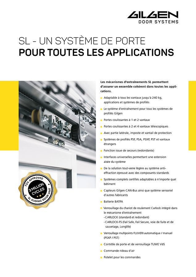 Les portes et portails automatiques servent également de protection contre les effractions : en dehors des heures de service et d'ouverture, ils peuvent être verrouillés (de manière anti-effraction). Gilgen Door Systems est votre partenaire pour les systèmes de portes et portails automatiques qui offrent une protection élevée contre les effractions dans les classes RC2 et RC3. Gilgen Door Systems est le seul fournisseur au monde à proposer des solutions de portes coulissantes certifiées RC 2/3 avec ou sans guidage d'ouverture continu.
