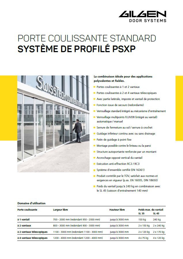 Les systèmes de portes coulissantes de Gilgen offrent un grand confort, une utilisation hygiénique, un design de qualité et un flux de personnes correctement géré. Elles confèrent une note esthétique à n’importe quelle entrée ou passage.
