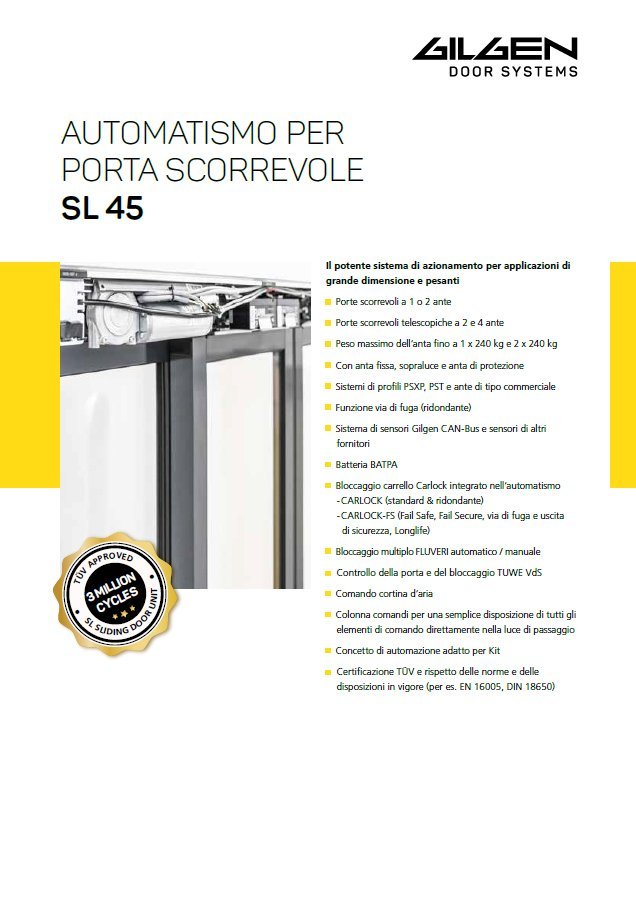 I cancelli e le porte automatiche servono anche come protezione antieffrazione: al di fuori degli orari di funzionamento e di apertura, possono essere bloccati (antieffrazione). Gilgen Door Systems è il vostro partner per i sistemi di porte e cancelli automatici che offrono un elevato livello di protezione antieffrazione nelle classi RC2 e RC3. Gilgen Door Systems è l'unico fornitore al mondo a offrire soluzioni certificate per porte scorrevoli RC 2/3 con e senza guide continue a pavimento.